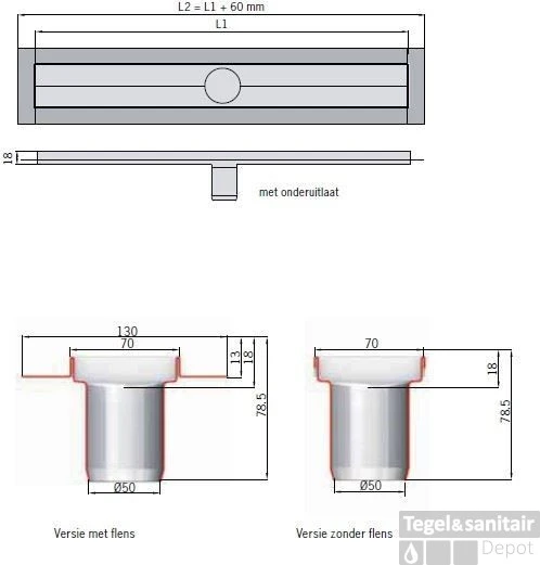 Douchegoot 108,5×7 h=1,8 met vloerflens