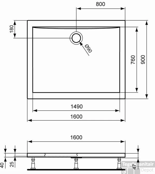 B&W-luxery Redro douchebak 160x90x4cm wit