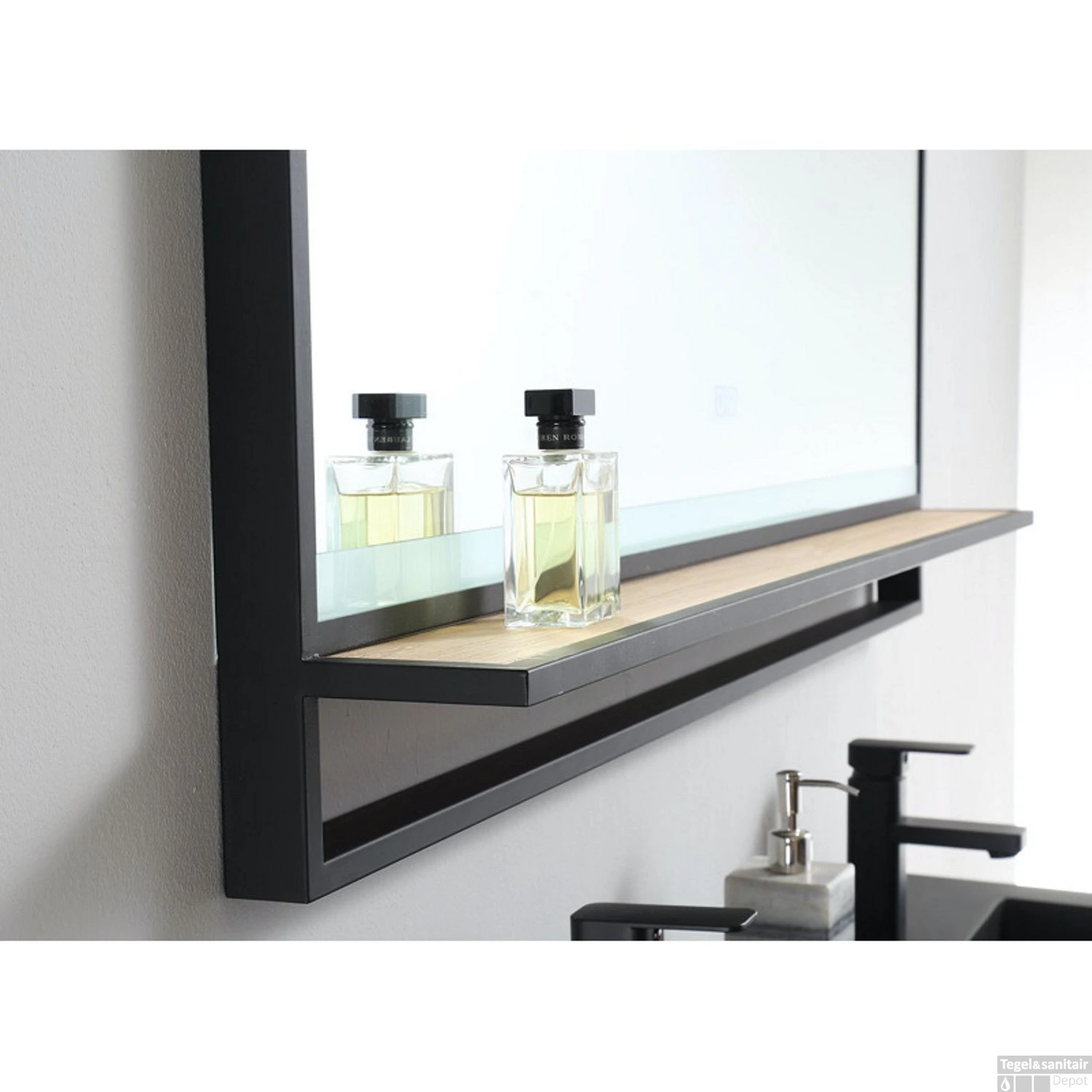 Badkamerspiegel Casajoy 120x70cm met Planchet, Ledverlichting en Anticondens Zwart