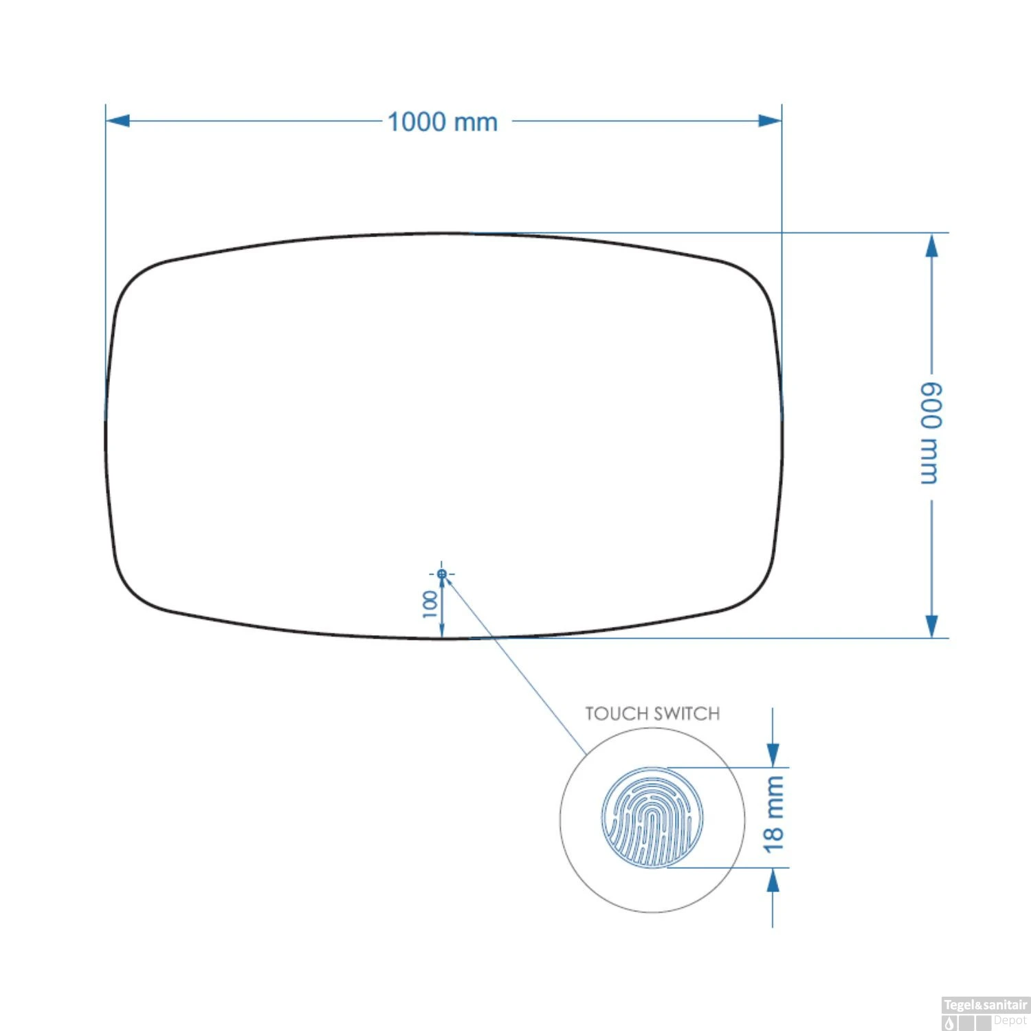 Specificaties Badkamerspiegel Gliss Erato 100x60cm Horizontaal LED Incl. Verwarming: