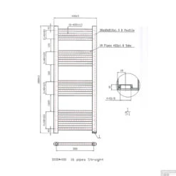 Designradiator Boss & Wessing Tubi Handdoekrek 175×60 Cm Zij-Onderaansluiting Chroom