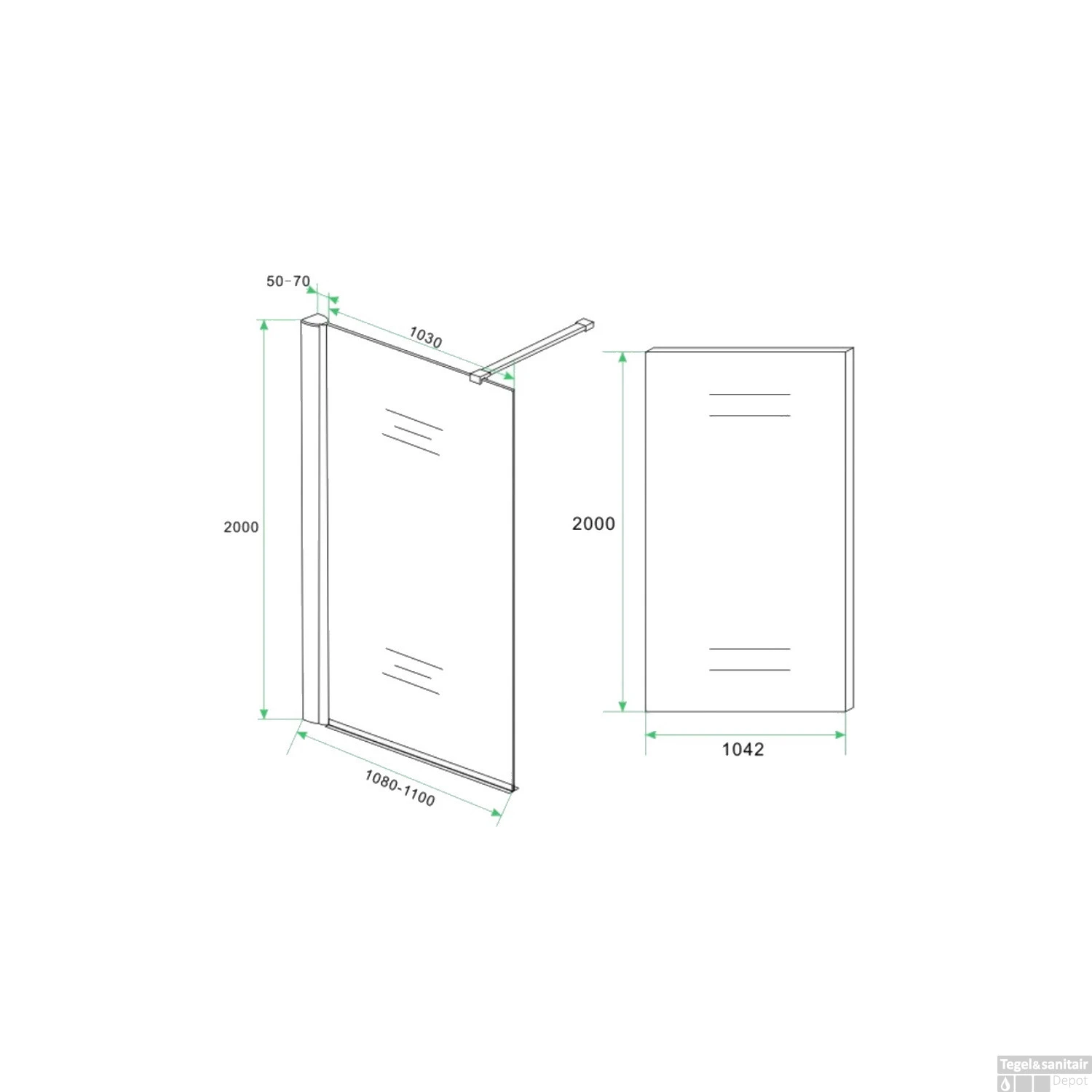 Specificaties BWS Eco Inloopdouche 110x200cm 8mm NANO Coating: