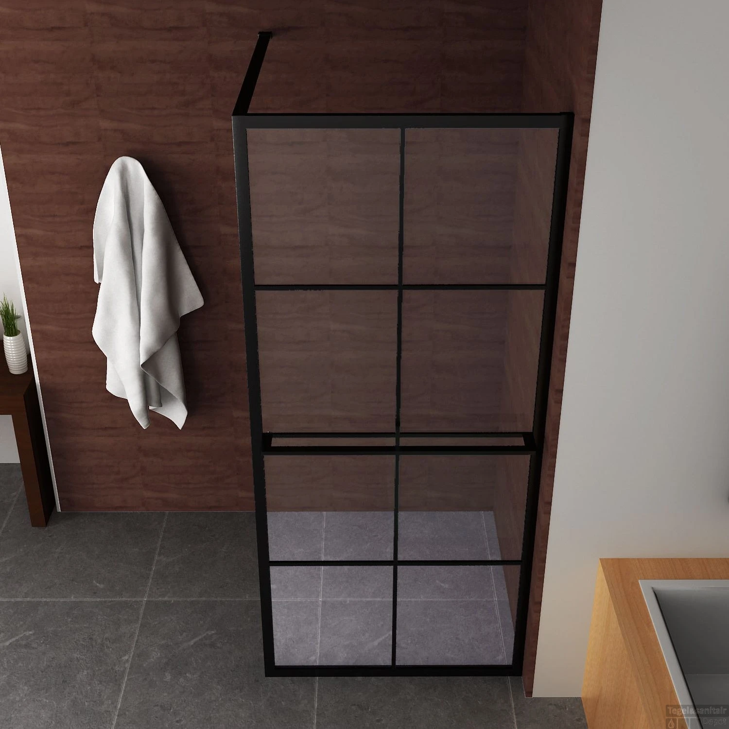 Deze inloopdouche heeft een geweldige uitstraling, mede door het black screen is deze inloopdouche helemaal van deze tijd en zal een echte toevoeging zijn in elke badkamer. De handdoekbeugel in de bijpassende kleur zwart is ook een handige en mooie toevoeging in de badkamer. Hierdoor droogt de handdoek extra snel op en neemt weinig ruimte in beslag. De inloopdouche met 10mm Nano veiligheidsglas (en antikalk coating) wordt geleverd met een muurprofiel. Door het muurprofiel kunt u de wand 1,5cm verstellen en is de inloopdouche eenvoudig te plaatsen, ook wanneer de vloer en wand niet exact haaks op elkaar staan. De douchewand is ook omgekeerd te plaatsen. Deze NANO-coating zorgt er ook voor dat het product langer schoon blijft en kalk en vuil zich minder snel hechten. De douchewand heeft geen vloerbevestiging, waardoor u de wand direct na het plaatsen transparant kunt afkitten. De stabilisatiestang die wordt meegeleverd en is universeel toepasbaar en aan te passen naar elke afmeting.