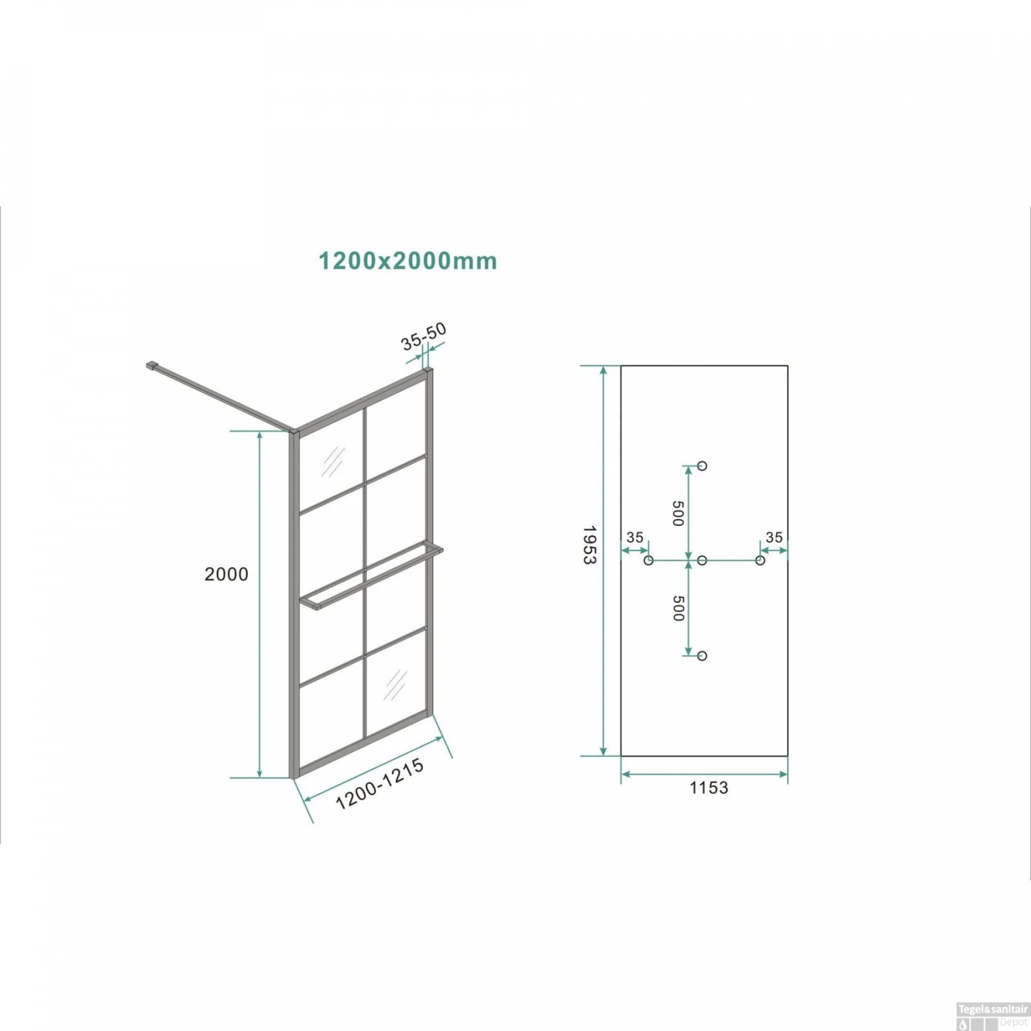 Specificaties BWS Inloopdouche Met Handdoekbeugel 120x200cm 10mm NANO Coating Zwart: