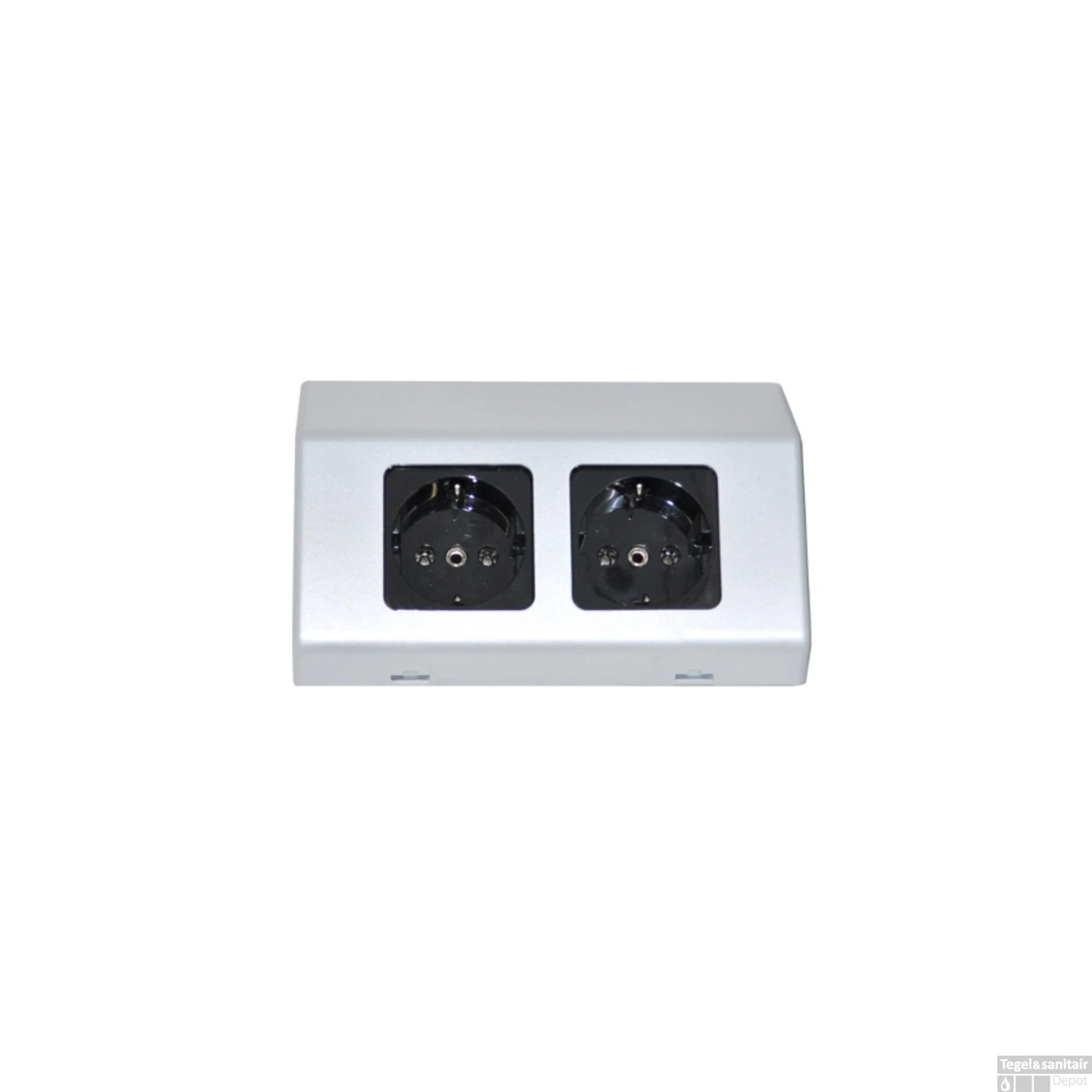 De opbouwcontactdoos kent een hoogte van 5,6cm, een breedte van 15,1 cm en een diepte van 8,1 cm. Het product heeft een zilvergrijze kleur. Bovendien krijgt u bij aankoop van deze dubbele contactdoos twee snoeren met een lengte van 90 cm meegeleverd om de contactdoos aan te kunnen sluiten op het elektrische netwerk.