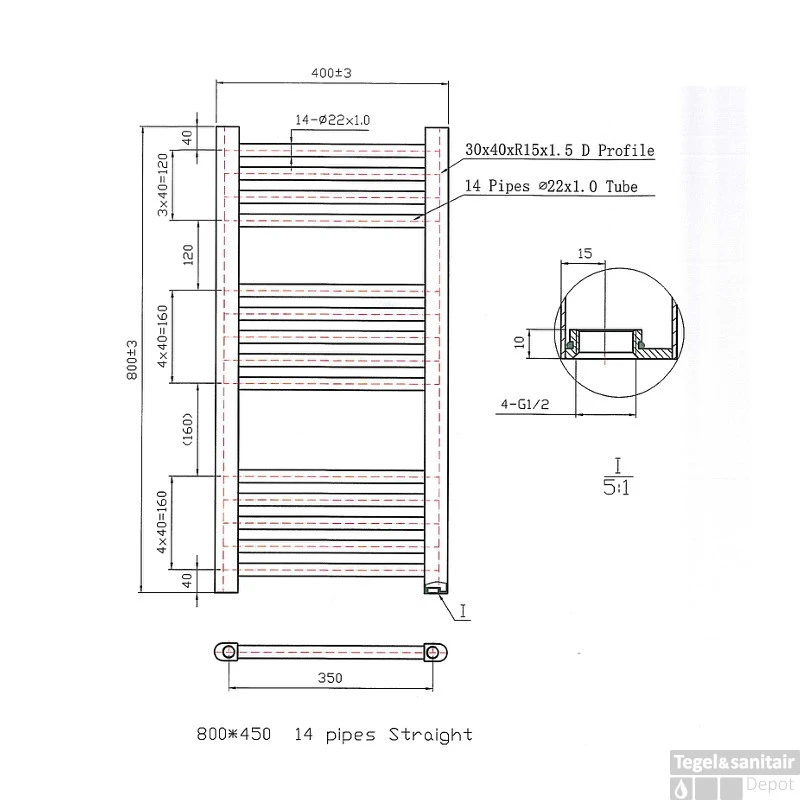 Specificaties Designradiator Boss & Wessing Vertico Multirail 80×40 cm Wit Zij-Onderaansluiting: