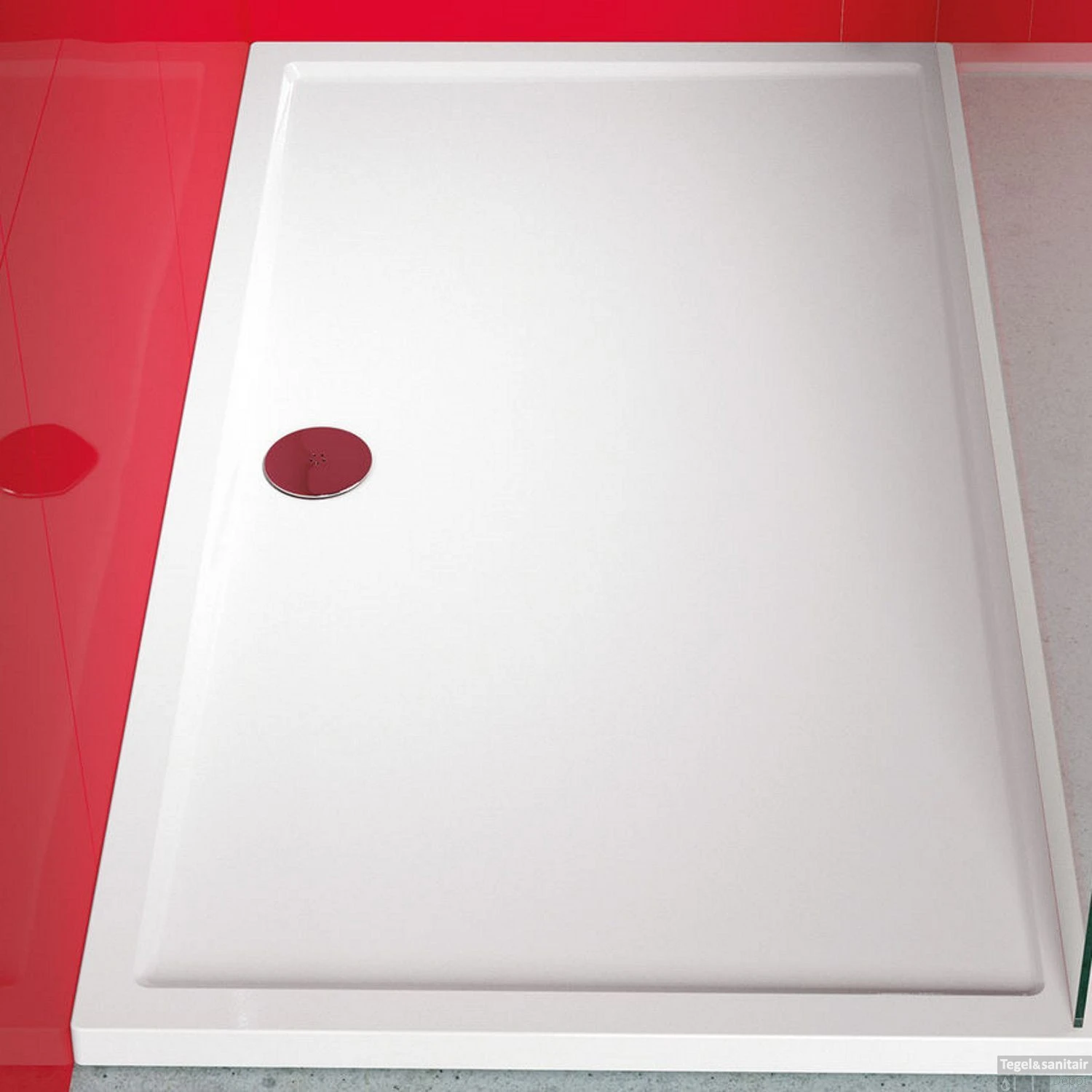 De douchebak is gemaakt van acryl en afgewerkt in glanzend wit.