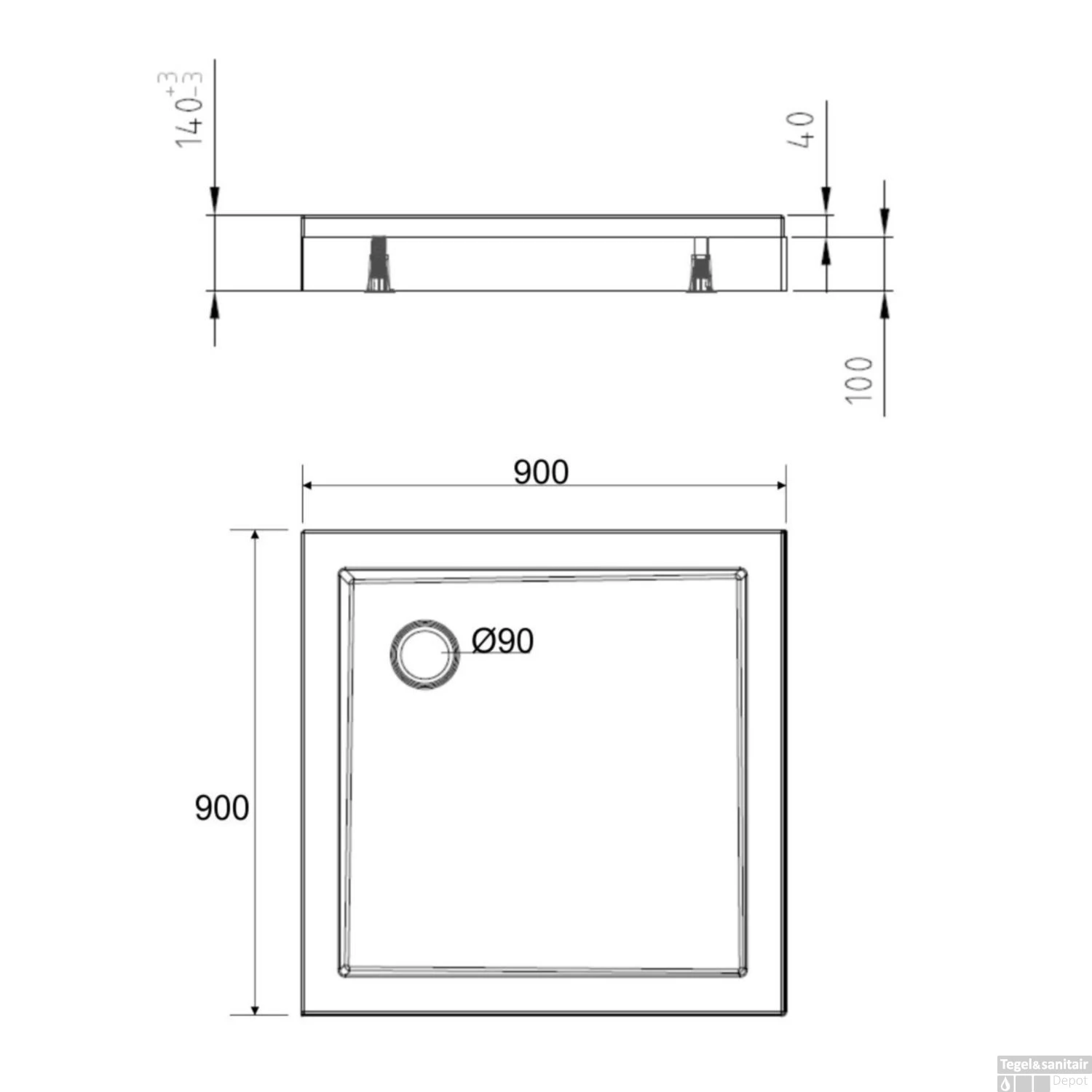 Douchebak Wiesbaden Acryl Vierkant 90x90x4 Wit