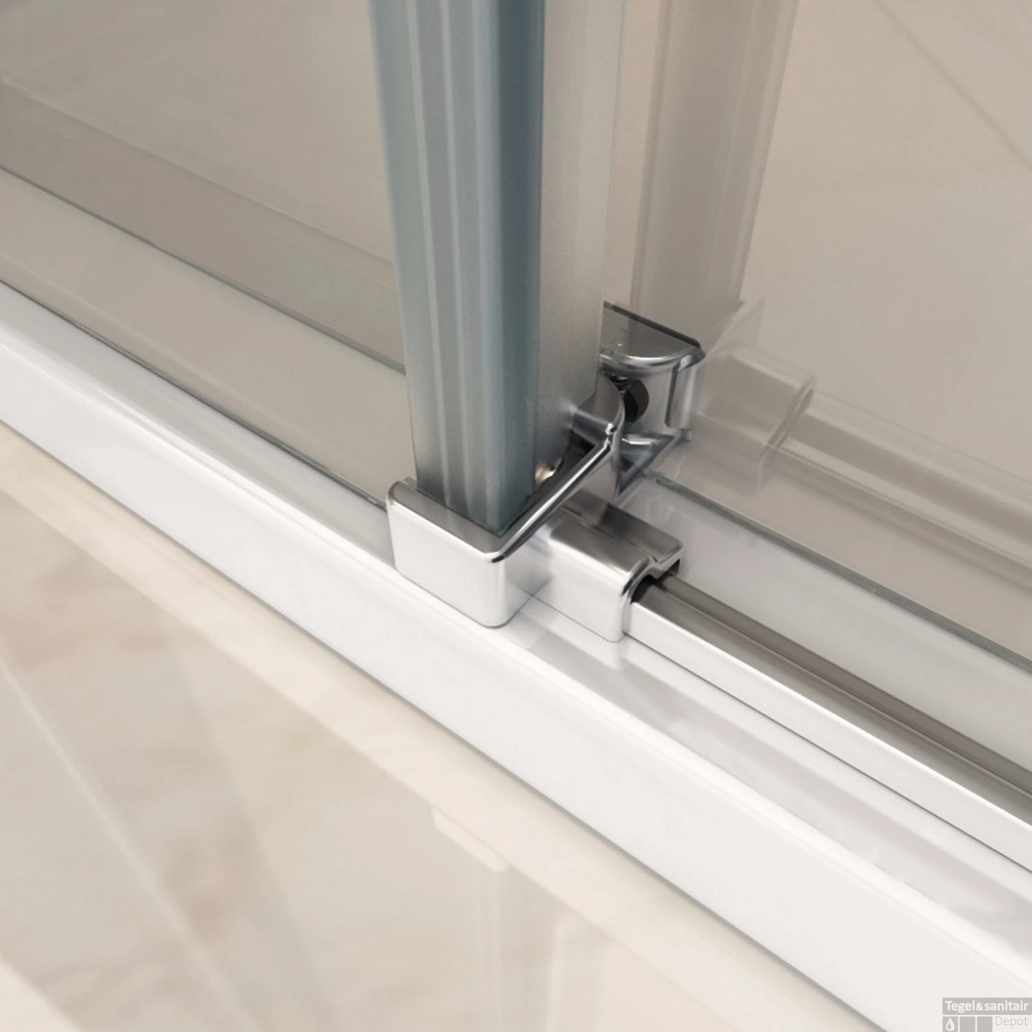 U kan de douchecabine betreden doormiddel van een schuifdeur die zowel naar links als rechts te openen is. Boven in de deur bevinden zich rollen. Deze rollen glijden over de rails en zorgen ervoor dat de deur makkelijk geopend en gesloten kan worden. Onderaan de deur bevind er een deur geleider, zodat de schuifdeur stabiel blijft.