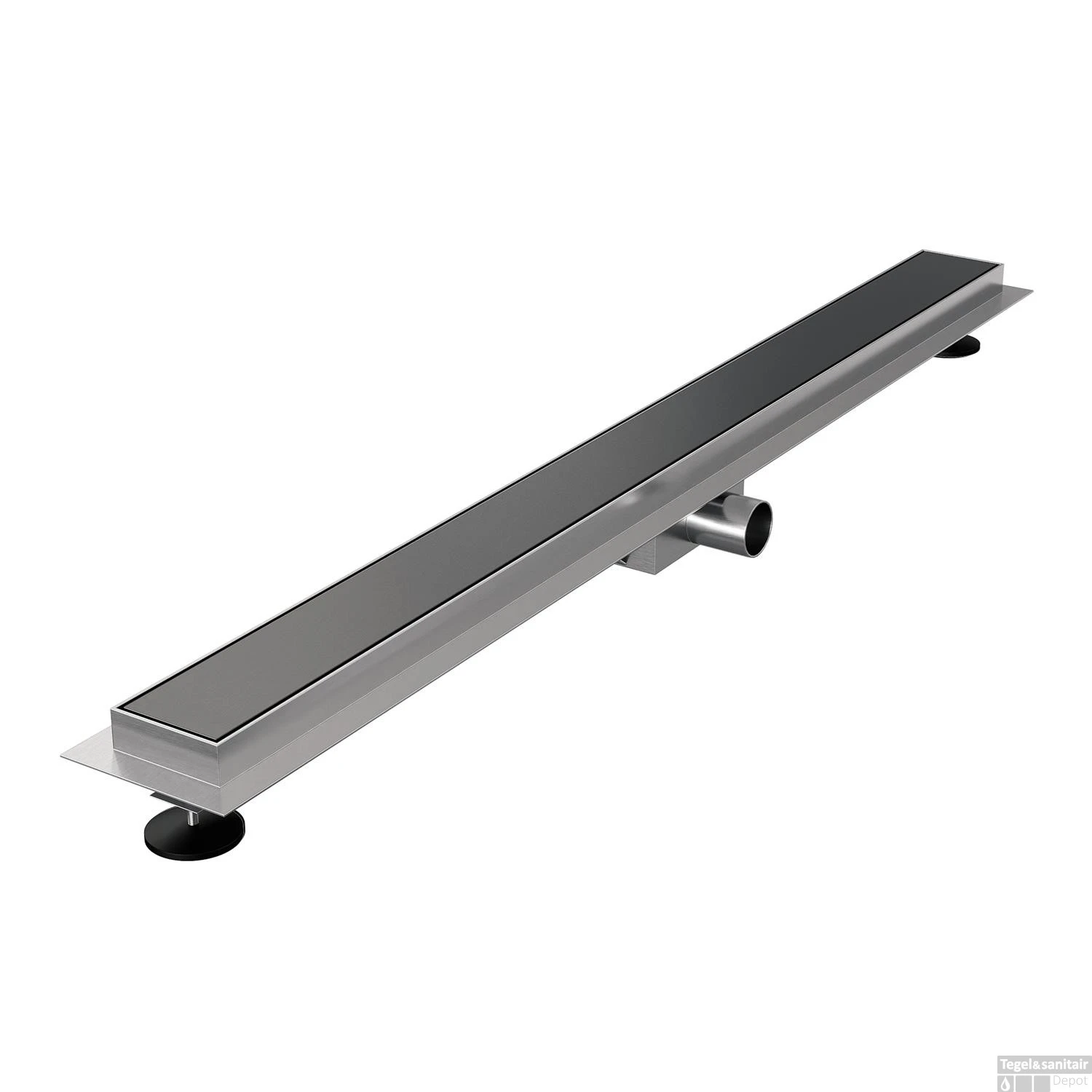 Douchegoot Brauer Gunmetal Inclusief Vloerflens 90×7 cm Zero Tegelinlegrooster Omkeerbaar