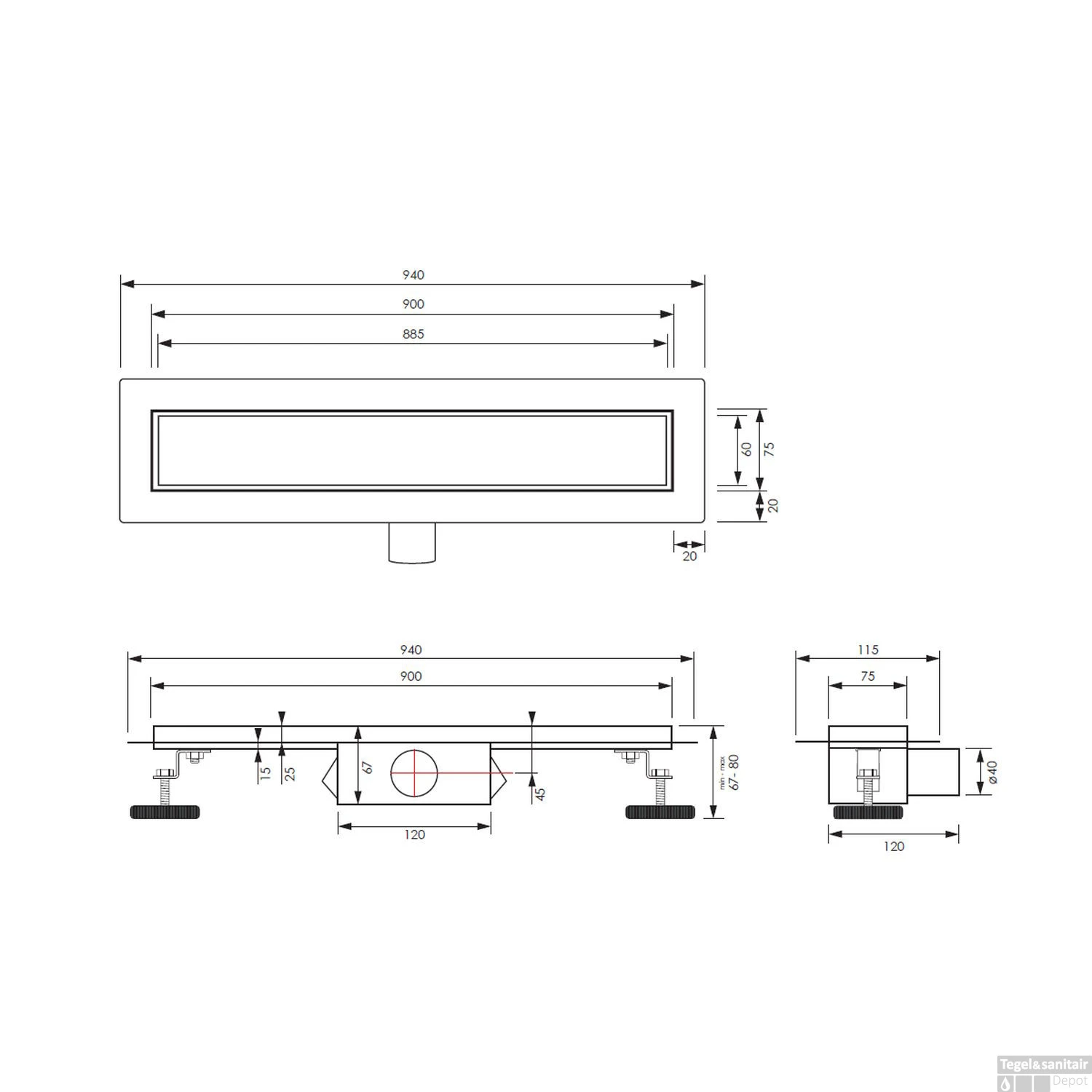 Ook wordt de douchegoot geleverd inclusief sifon (kunststof), waterdichtdoek en een sleutel om het rooster er gemakkelijk uit te halen wanneer nodig. De douchegoot wordt geleverd inclusief vloerflens, dit is de rand om het rooster heen die zorgt voor een beter afsluiting. U kunt deze douchegoot ook in hoogte naar wens afstellen door middel van de verstelbare pootjes die erbij worden geleverd.