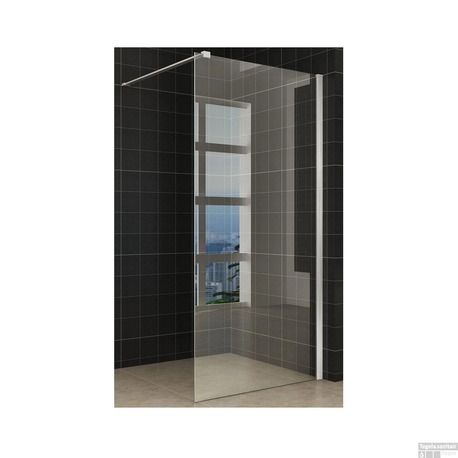 Douchewand Wiesbaden met RVS profiel 100×200 cm 10mm NANO glas
