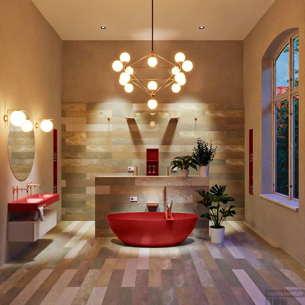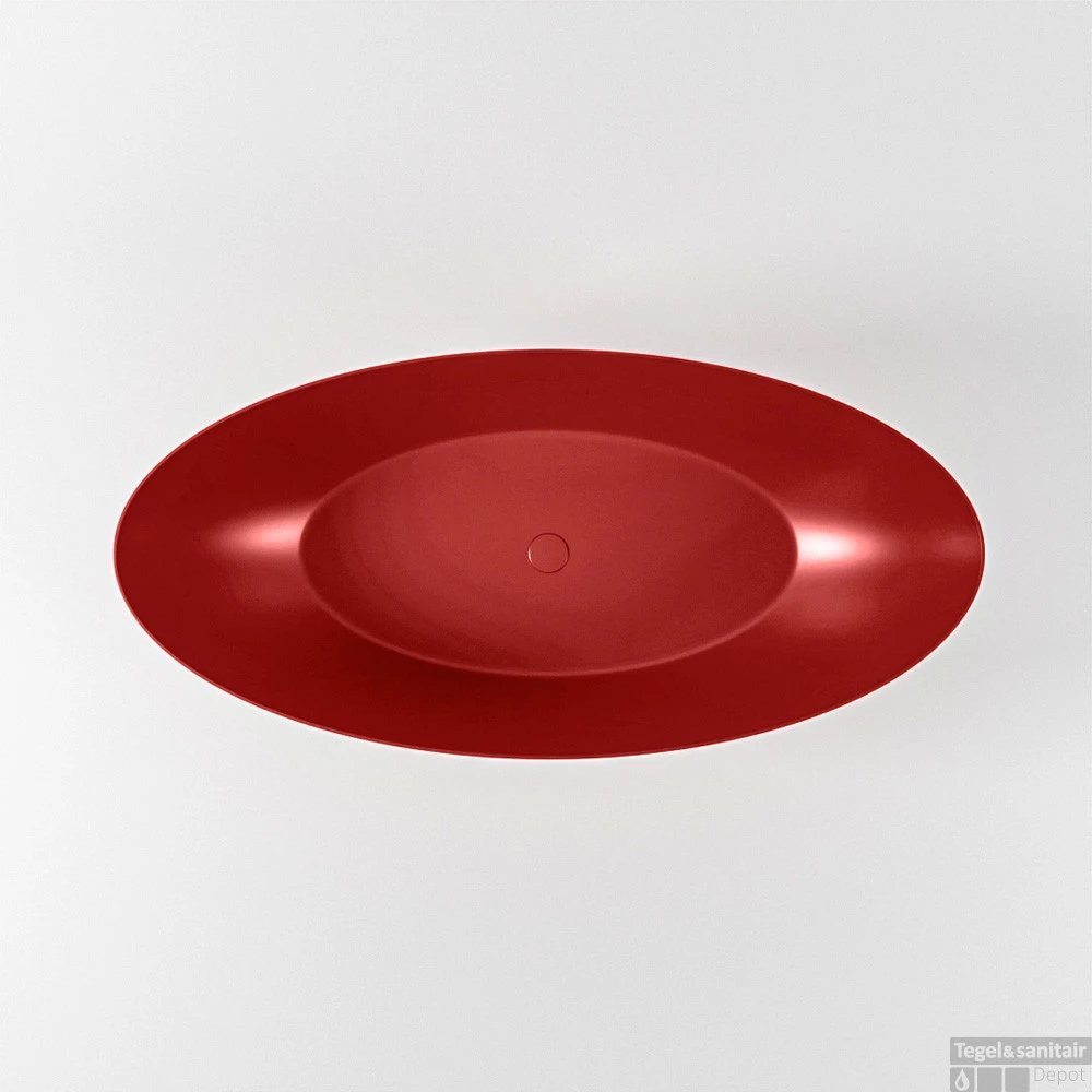 De ovale vorm kan goed vrijstaand geplaatst worden, maar zoals op de afbeelding staat het ook schitterend voor of bij een muur. Deze schitterende badkamer opstelling is gecombineerd met het badmeubel ALANen Solid Surface nissen. Zowel de wastafel als de meubels kunnen perfect matchen met het bad. Je kunt met een gerust hart kiezen voor kleur in de badkamer.