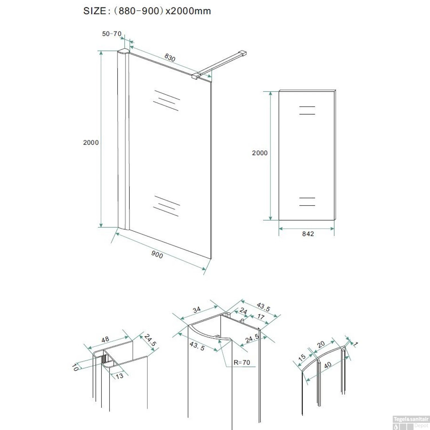 Specificaties inloopdouche 90×200 cm Spiegelglas: