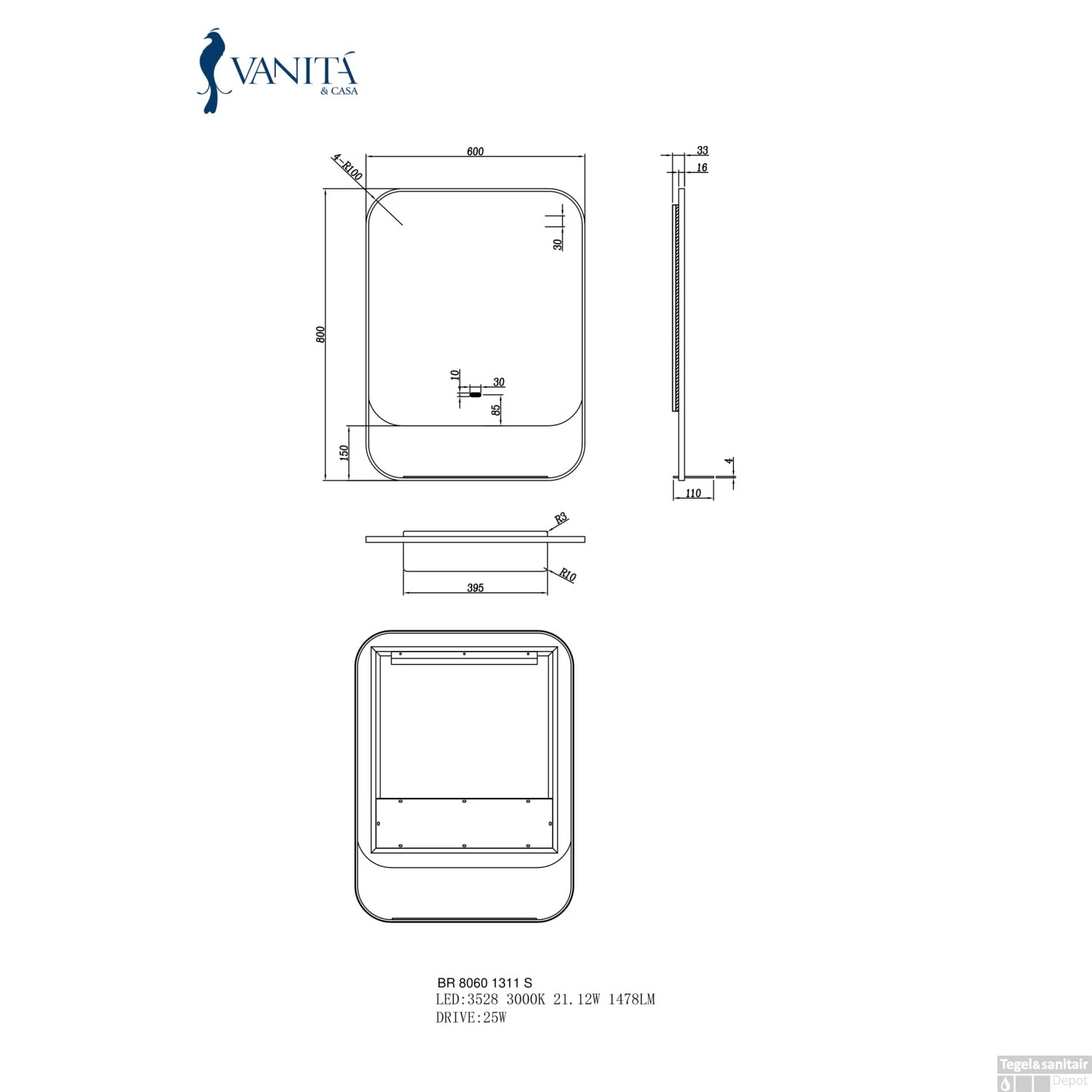 Specificaties Led Spiegel Vanita Pollux Mat Zwart: