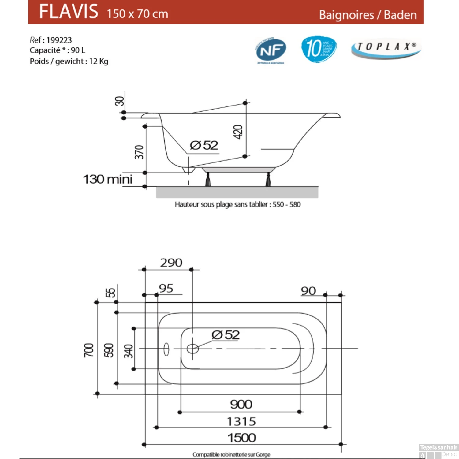 De ligbad Flavis van Allibert is een rustig bad dat past in elke badkamerruimte. Wilt u een bad, maar is uw badkamer wat klein voor een bad. Dan is Flavis de oplossing. Het bad is, maar liefst 150 cm lang, 70 cm breed en 58 cm hoog.