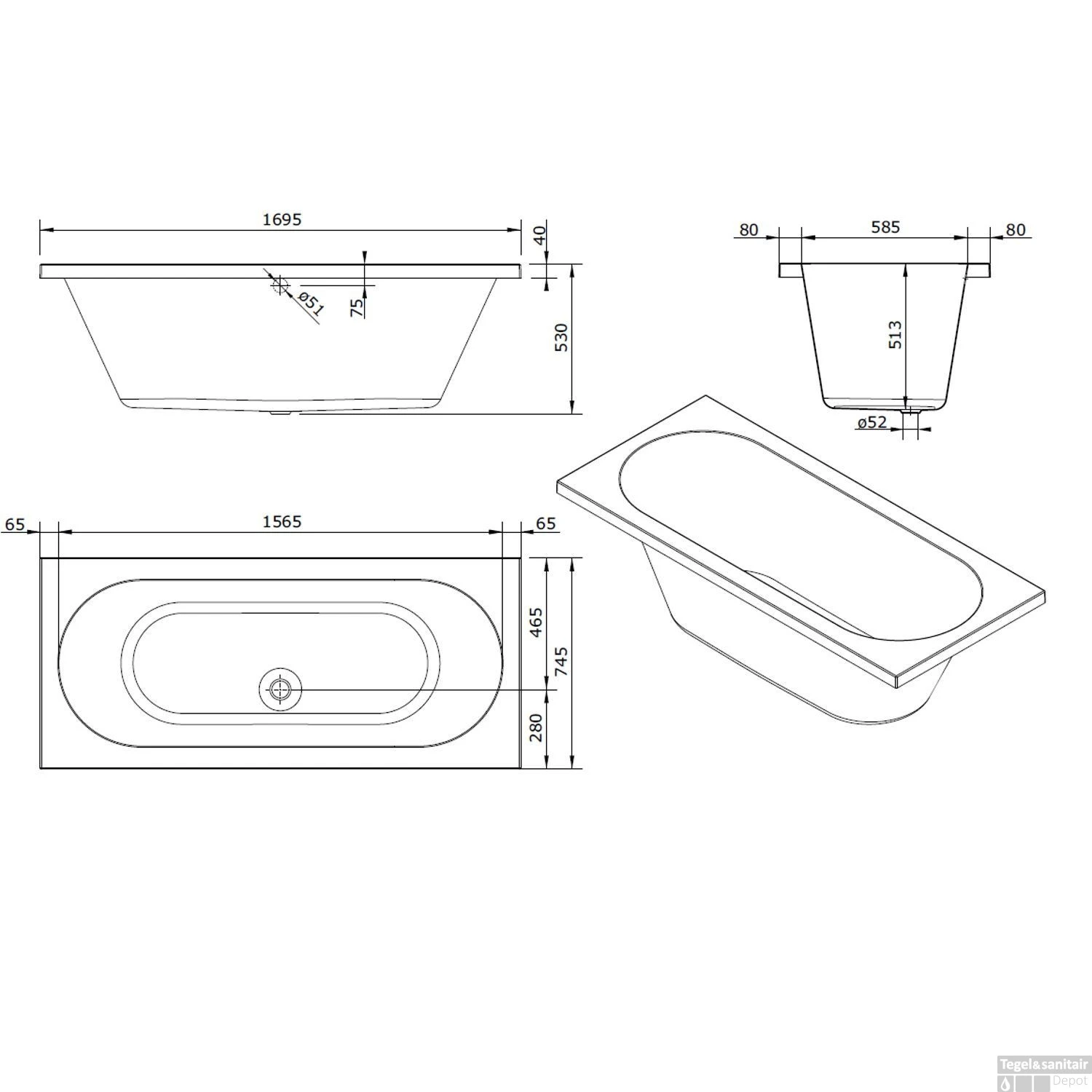 Met dit stijlvolle, ruime bad kunt u altijd genieten van een warm bad na een lange dag. Met zijn afmetingen van 175×75 cm is er plaats genoeg om erin te liggen. Het bad is 53 cm hoog. De rand heeft een dikte van 8 cm. De afvoer heeft een diameter van 5,2 cm. Dit bad wordt geleverd exclusief afvoer en badpoten.
