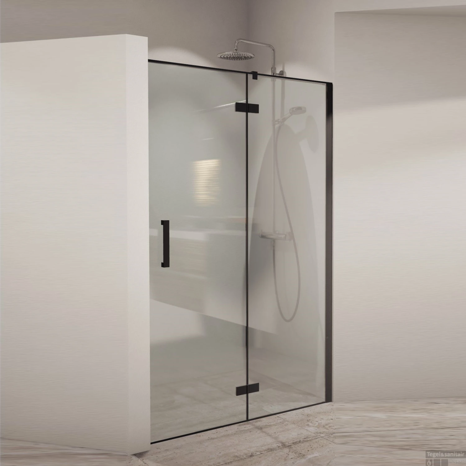 Let op: Doordat het glaswerk ook op een douchebak geplaatst kan worden zijn de afmetingen 3cm kleiner dan de aangegeven maat.