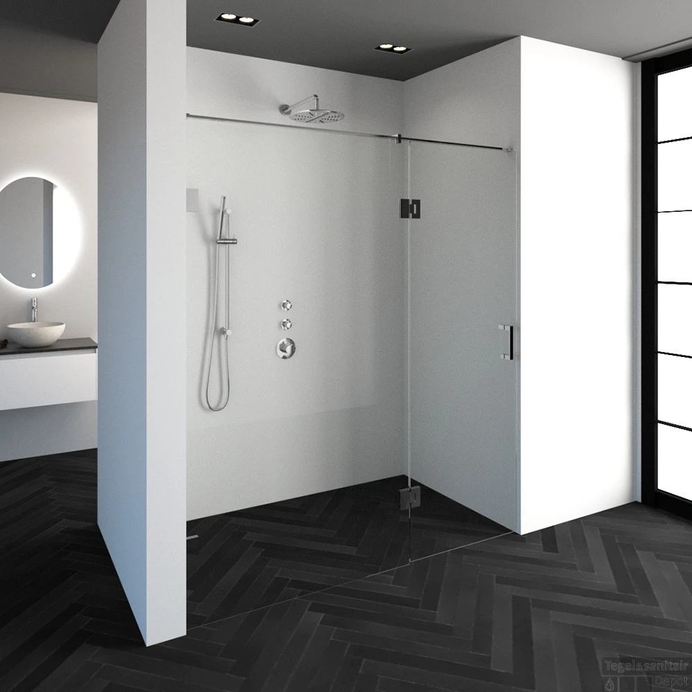 Nisdeur Compleet Just Creating Profielloos 2-Delig (Draaideur Bevestigd op Inloopwand) 180×200 cm 110/70 Chroom