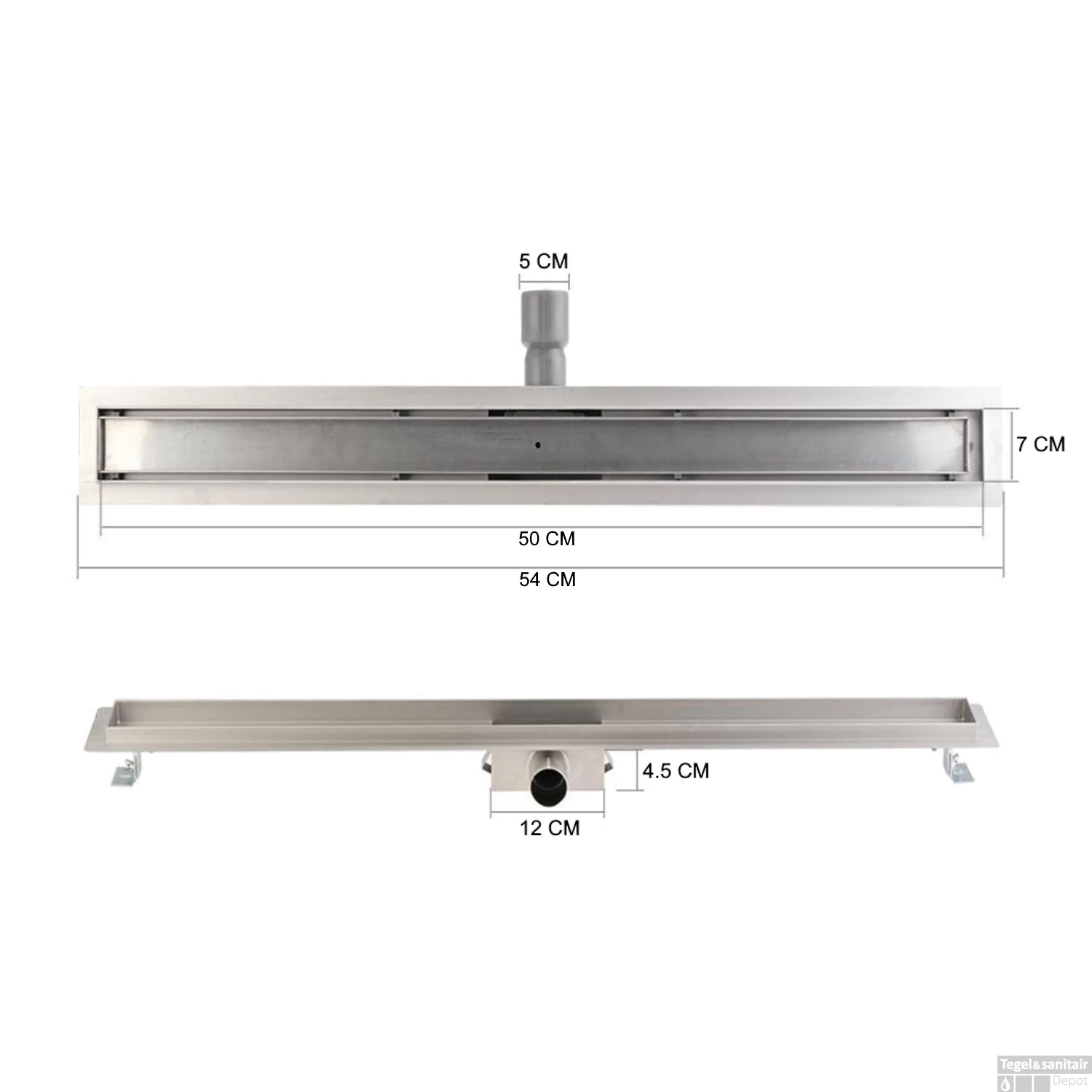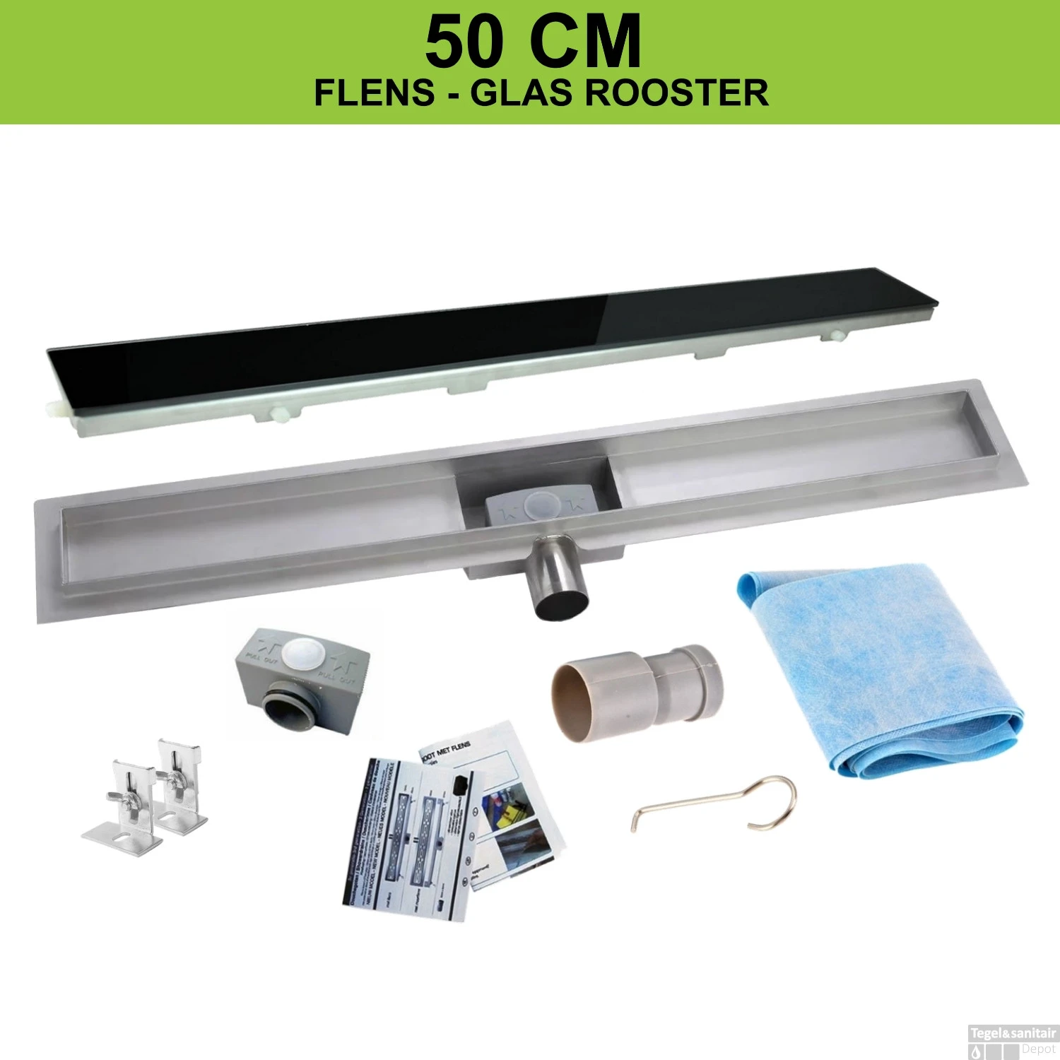 RVS Douchegoot flens met uitneembaar sifon 50x7cm 6,7cm diep GLAS ROOSTER