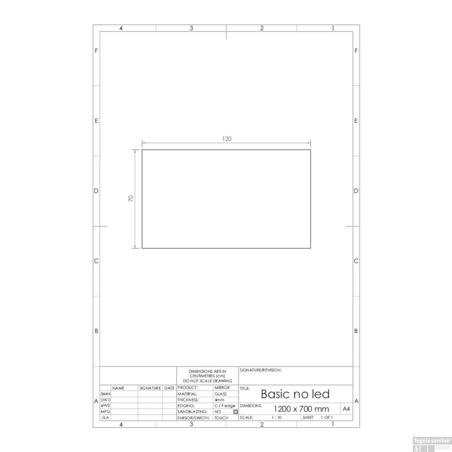 Specificaties Spiegel Gliss Design Basic Zonder Verlichting 120cm: