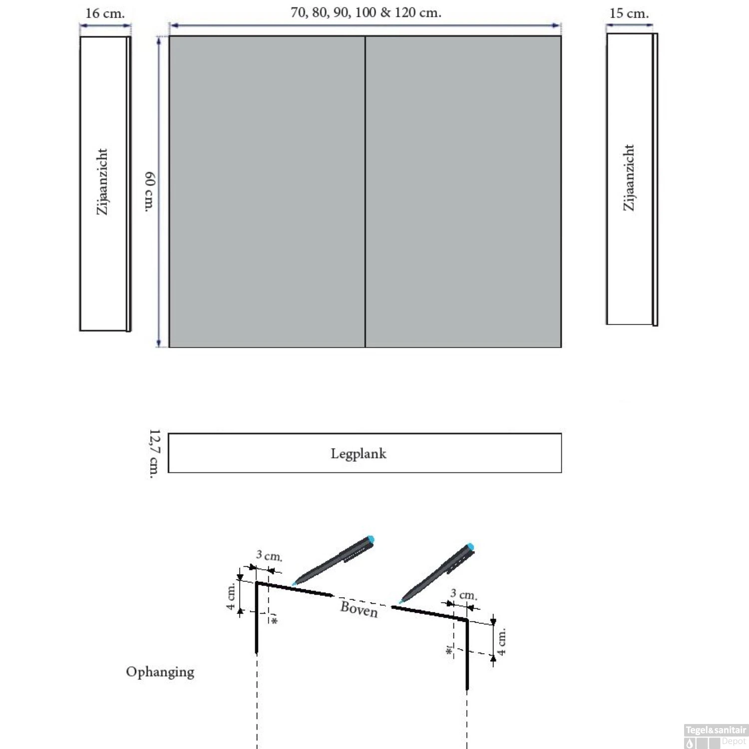 - Diepte: 15 cm