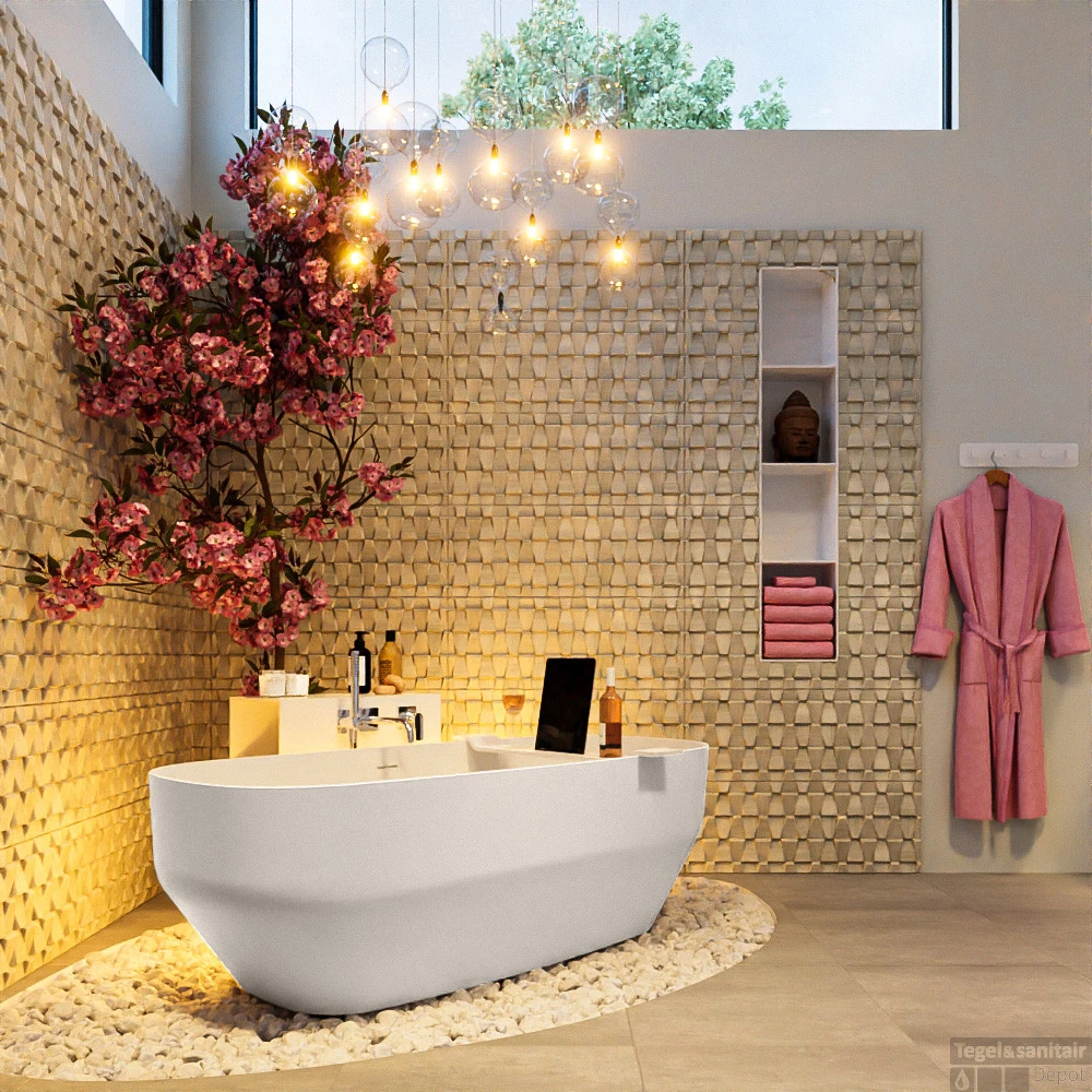 STONE Vrijstaand Bad 170x75cm Kleur Linen / Talc