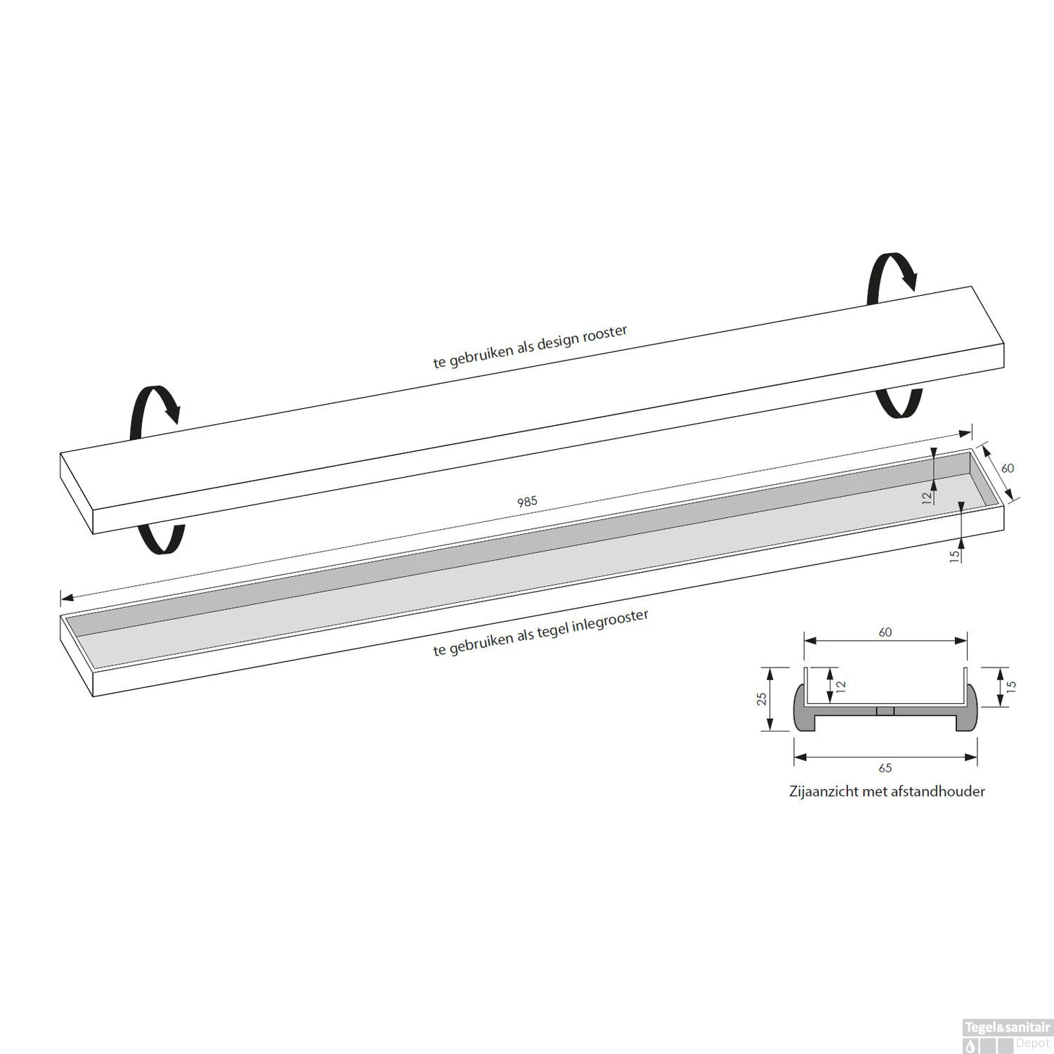 Specificaties Tegelinlegrooster Brauer Gunmetal Edition Omkeerbaar tbv Douchegoot STD/W/PS 100×7 cm Inclusief Afstandhouders