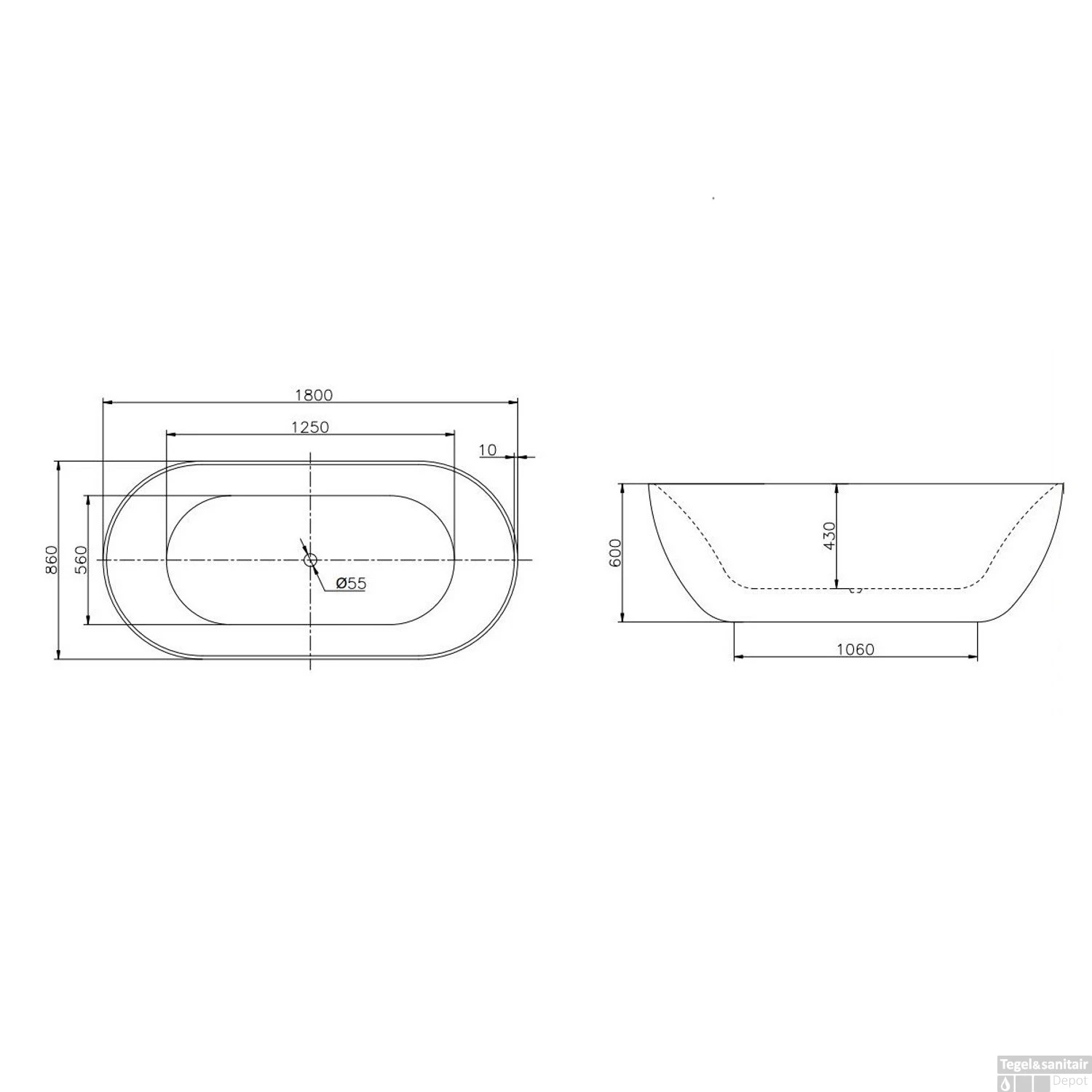 Vrijstaandbad Best Design Nicelook 180x86x60 cm Zilver